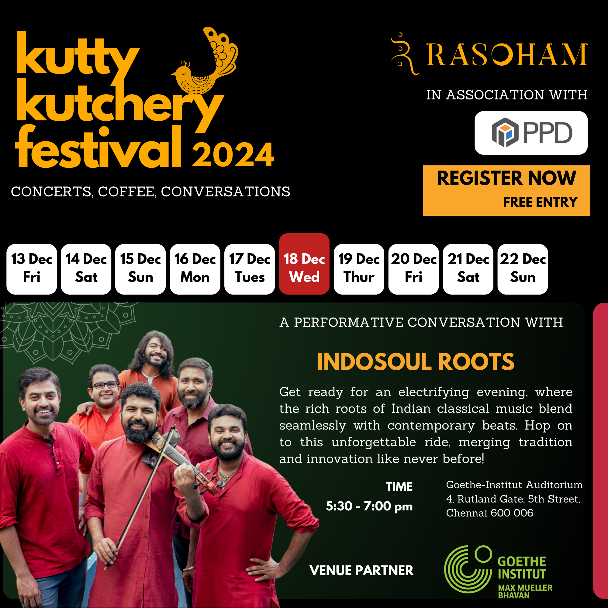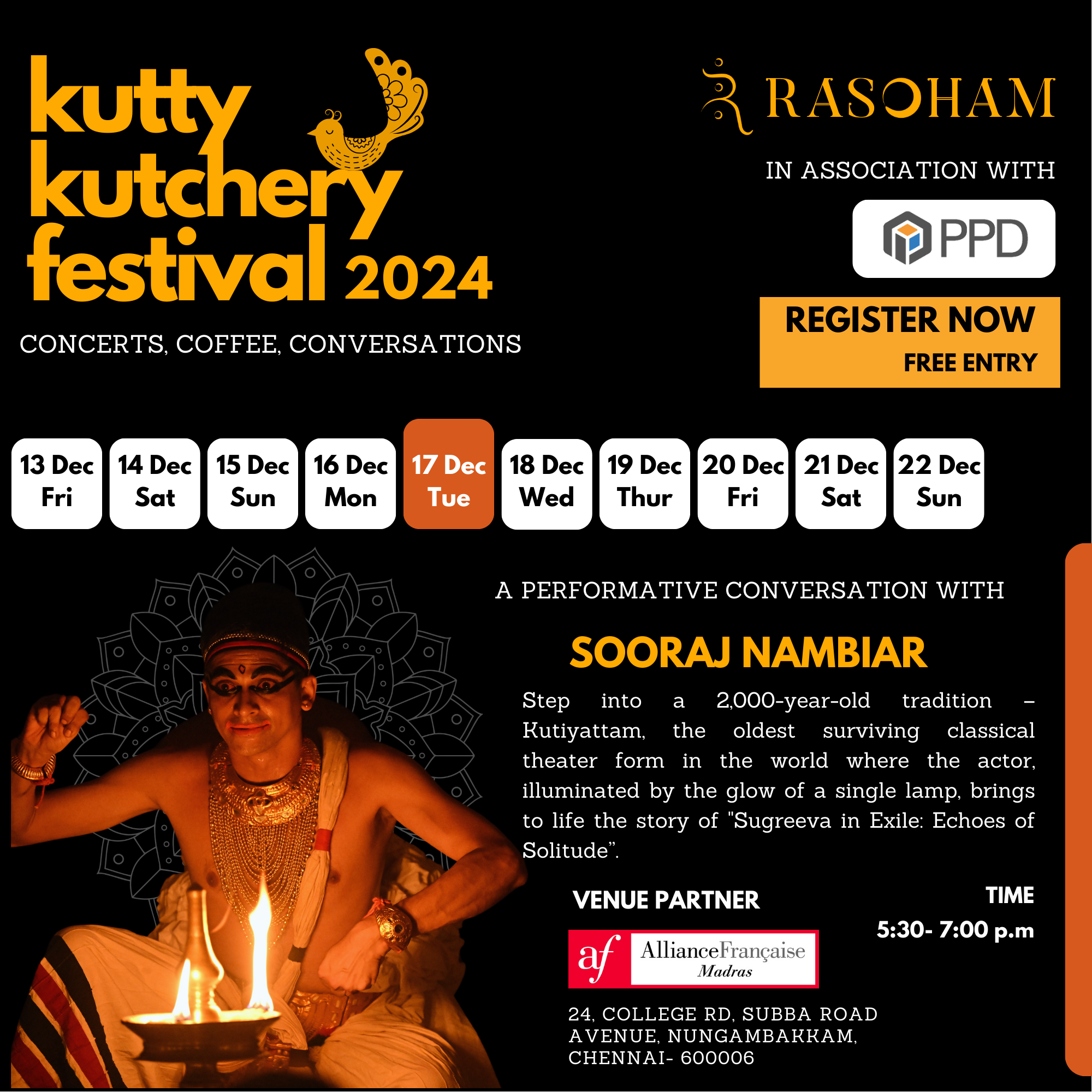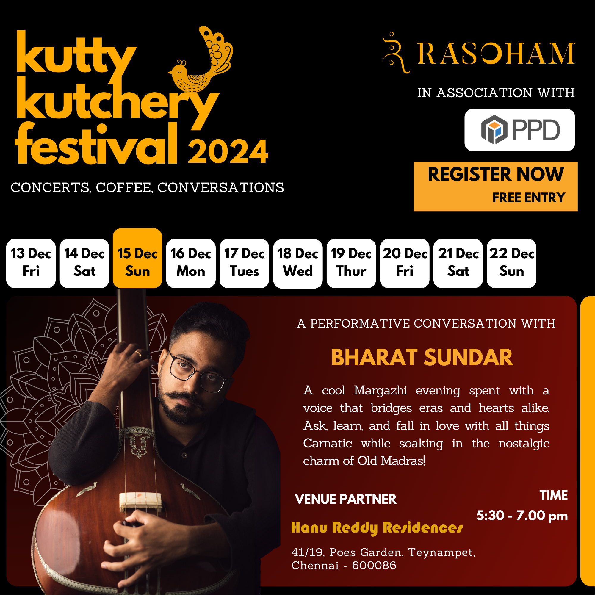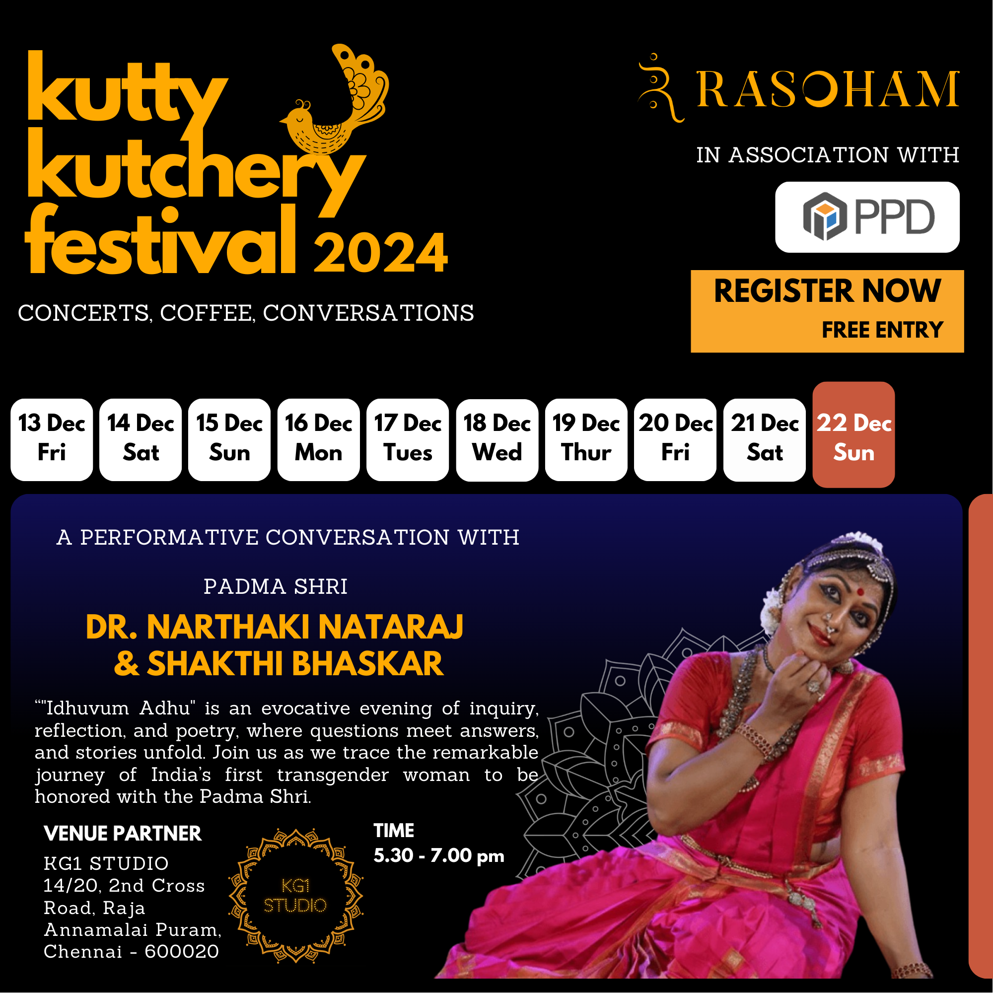 A heartfelt thank you to our ART HOST Venue Partners: RASOHAM Studio, Narthaki Studios, Hanu Reddy Residences, Bharatakalanjali’s TEACH Auditorium, Alliance Française, Goethe-Institut, Kaladiksha, Medai, Rare Lily and KG1 Studios for their incredible support during the Kutty Kutchery Festival 2024.